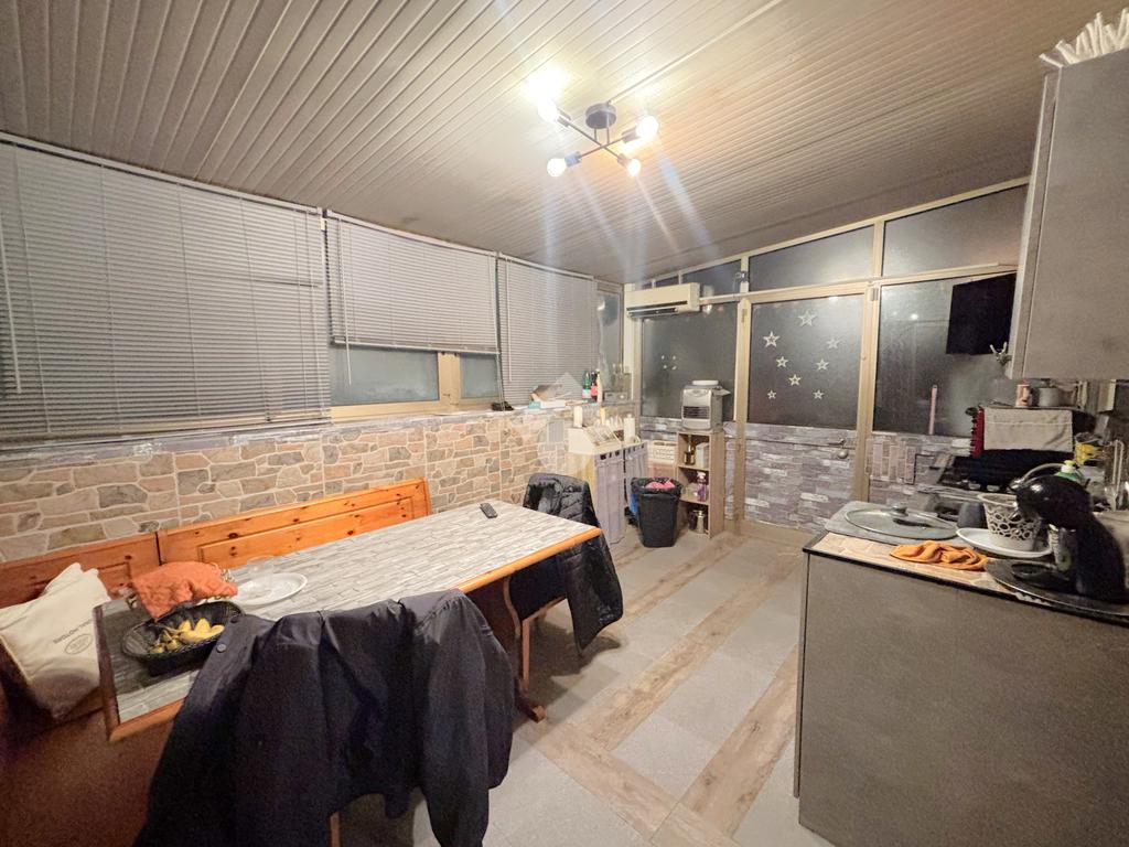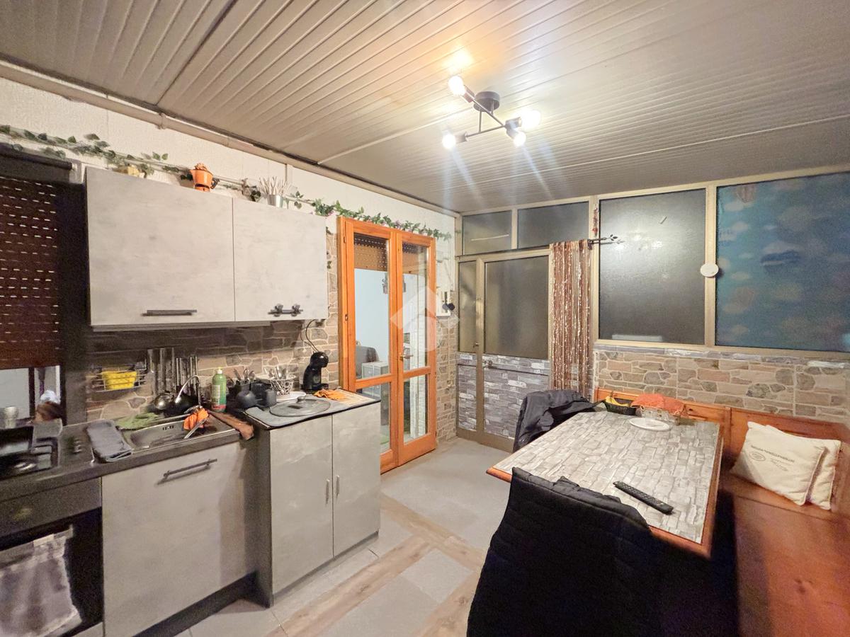 L’abitazione si apre su una ampia zona giorno di circa 40 mq. La cucina è separata si afffaccia su una veranda, dalla quale si accede direttamente al giardino esterno.