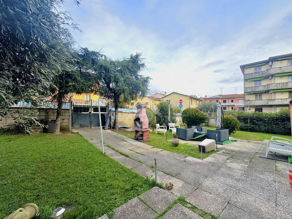 Completa la proprietà un ampio giardino privato di cira 440mq, dotato di cancello carrabile con la possibilità di parcheggiare l’auto all’interno, un garage e una cantina.